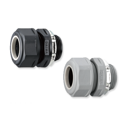 ケーブルを確実にグリップし、ボックス類などに引き込むストレートコンネです。金属製、樹脂製、また多心用など様々な用途に対応します